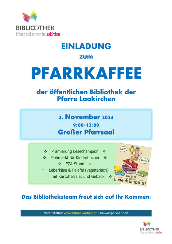 Einladung zum Pfarrkaffee der öffentlichen Bibliothek der Pfarre Laakirchen