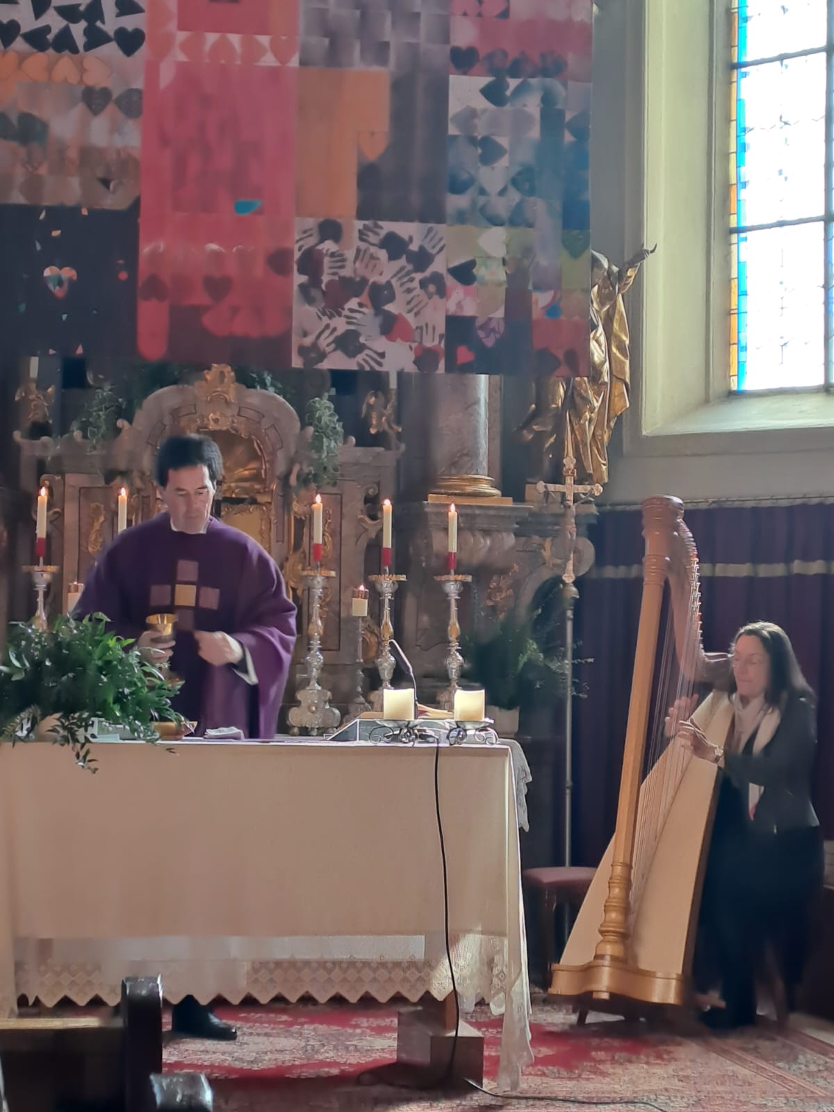 Bei einer sehr stimmungsvollen Aschermittwoch Messe wurde das neue Fastentuch "Herzensangelegenheiten" der Künstlerin Elisabeth Schickmayr von Kaplan Franziskus Schachreiter gesegnet.